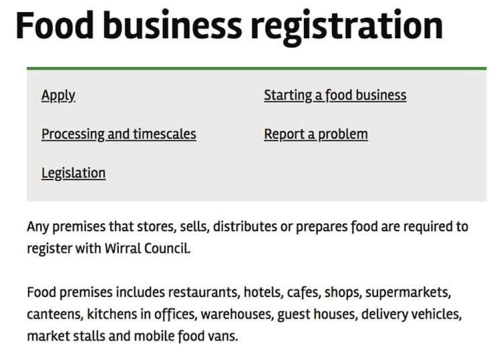 Food businesses come in all shapes and sizes, including restaurants, cafés, pubs, home baked goods, and social media-based food businesses. However, everyone operating a food business – whether that's to store, handle, sell or deliver food or to cook and prepare the food – must be registered with Wirral Council.